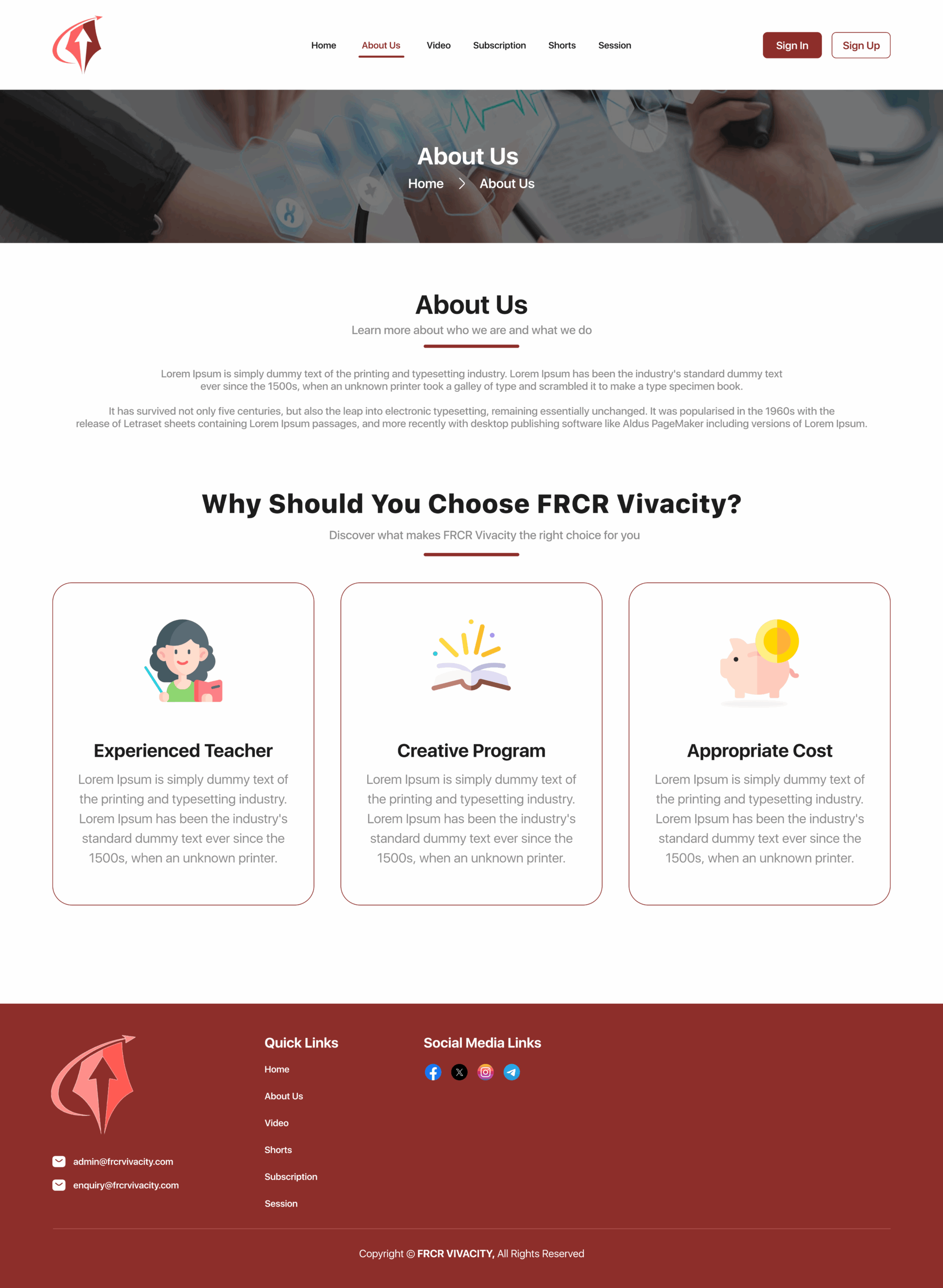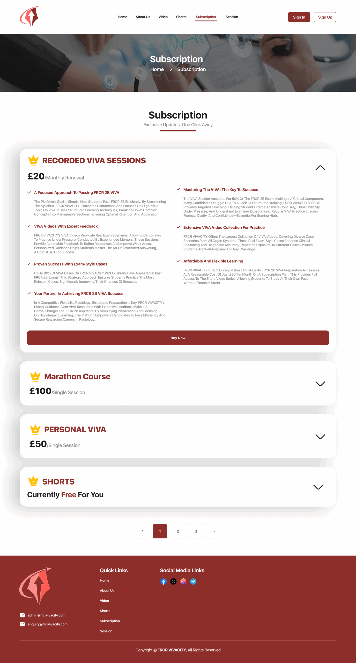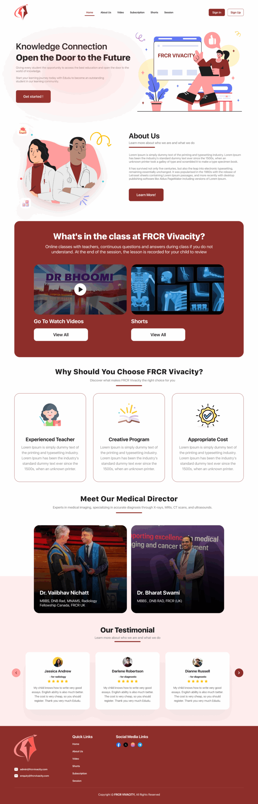 FRCR VIVACITY Website has the following features: